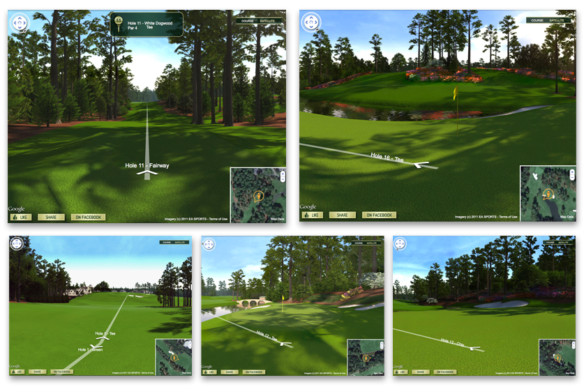 Course View combines EA’s video game engine, 3-D laser scans of the real Augusta National accurate to the millimeter, and Google Street View API. The result is a 360-degree, fully walkable digital replica of the course that anyone, not just the world’s elite, can explore.